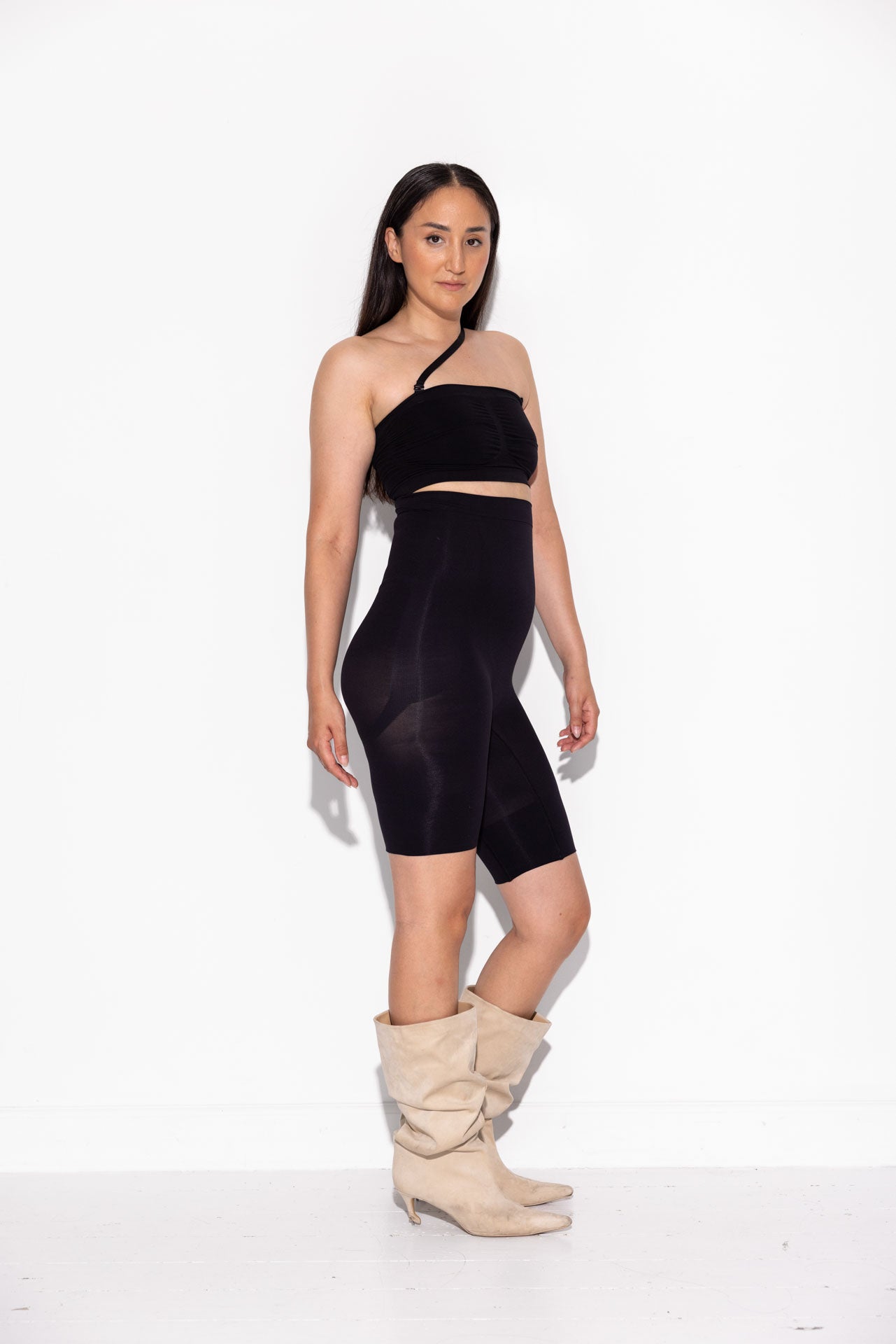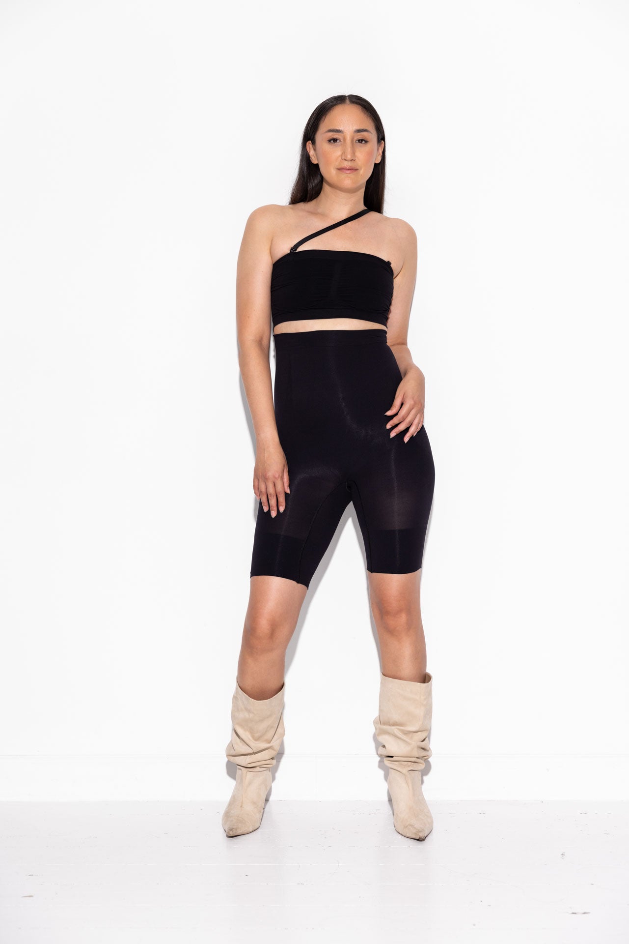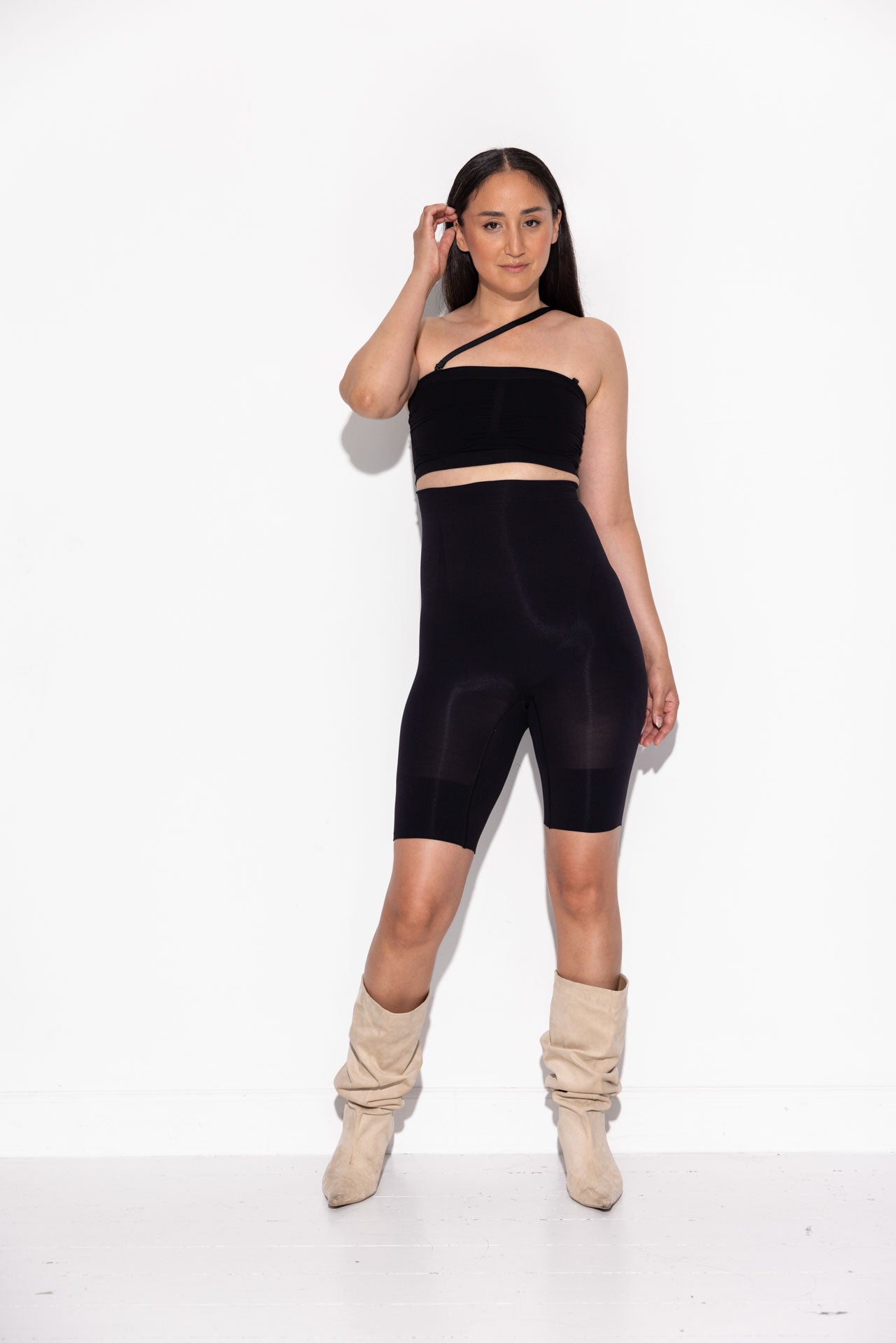 High-waisted shaping shorts designed to be worn seamlessly under all outfits — including jeans, trousers, dresses, and skirts.